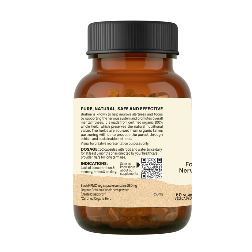 Organic India Brahmi Capsules support mental clarity, memory, focus, and overall nervous system wellness. A powerful adaptogenic herb traditionally used to promote cognitive function, calm the mind, and support restful sleep, Brahmi helps maintain emotional balance and daily mental performance.